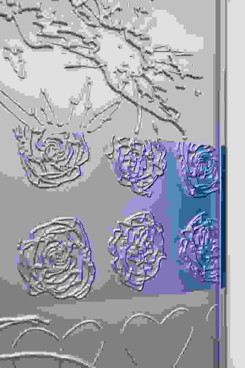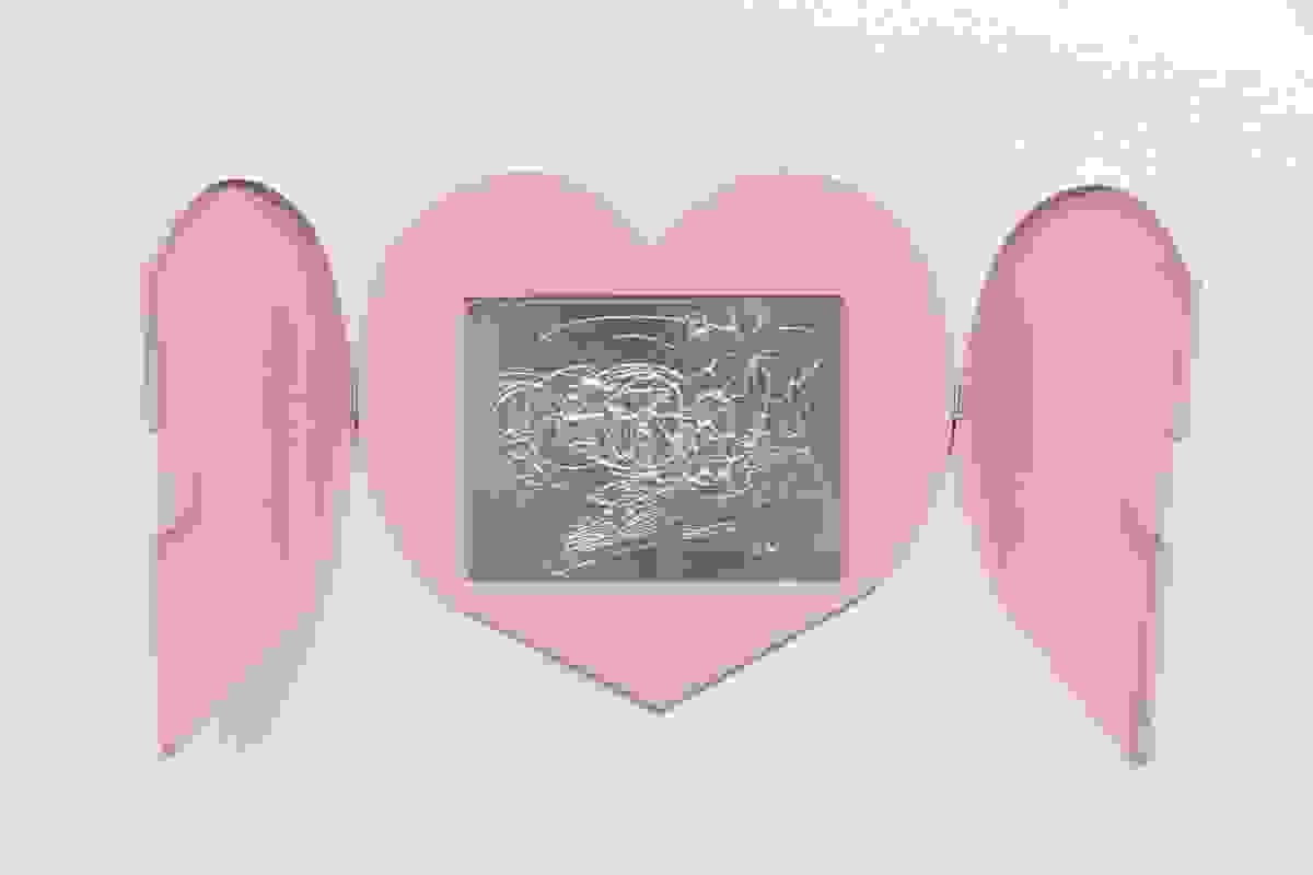 In her solo exhibition, a room of my own, at Mehdi Chouakri Berlin, Hannah Sophie Dunkelberg takes up Woolf’s literary form of social critique; she transfers the writer’s plea to reevaluate the connections between gender, autonomy, and art into her own sculptural discourse. The exhibition opens with Dunkelberg’s own interpretation of the drawing mentioned in the quote, which Woolf’s fictional writer creates impulsively out of an affective response of anger – of Professor von X, a figure easily read as an analytical objectification of the institution of patriarchy. Stored in a pink heart-shaped cabinet and translated into the drawing process the artist has developed, where a delicate hand drawing is gradually abstracted and subjected to a mechanical process, a dialogue unfolds not only about female-associated artistic practices, techniques, and media but also the nuanced attribution of meaning and stereotyping of male and female anger – and more generally, emotionality.