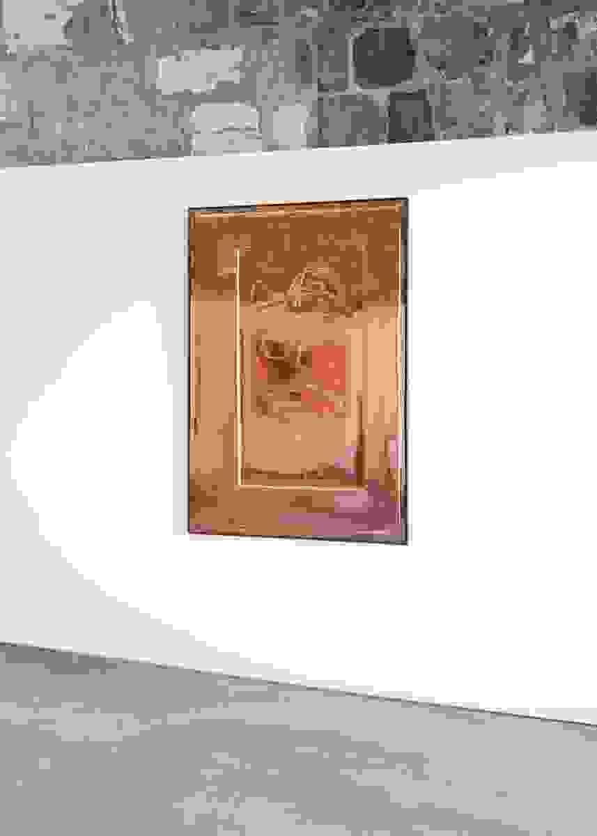Somewhere between a joyful play of light and shadows, a genuine interest in our past and a critical understanding of its profound failings, Hannah Sophie Dunkelberg’s shimmering wall reliefs, dressed sculptures and velvety wicker baskets meet. Echoing a ceaseless negotiation of dichotomies, the soft fabric of the different pajamas rests on the cold bronze material of the dark statues. A few centuries ago, these naked archers were considered among the cornerstones of an artist’s training (a male artist, that is, since everyone else was not eligible to enter the academies at the time). Chi dorme non pecca can be read across the striped textiles – he who sleeps does not sin – thus implying that sleep provides a reprieve from sin or, at least, offers a chance to reset and start anew, free from past transgressions.