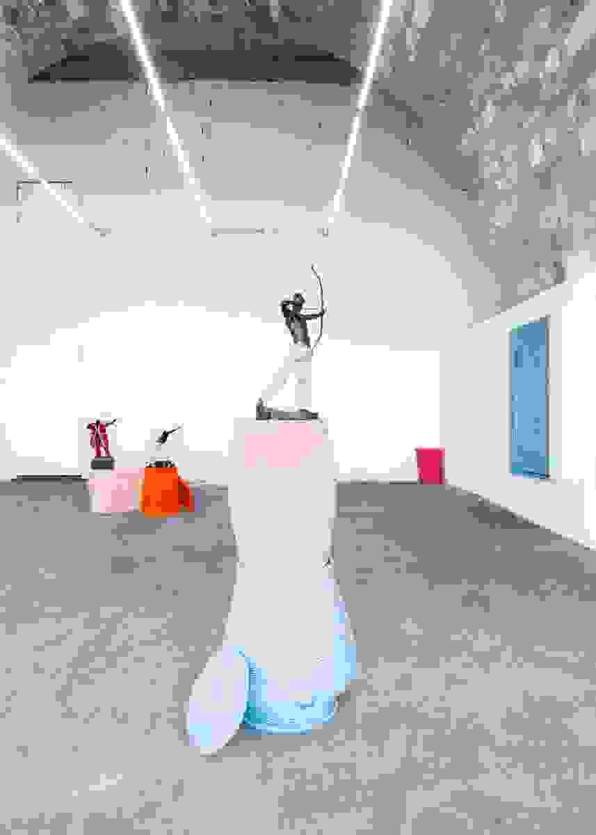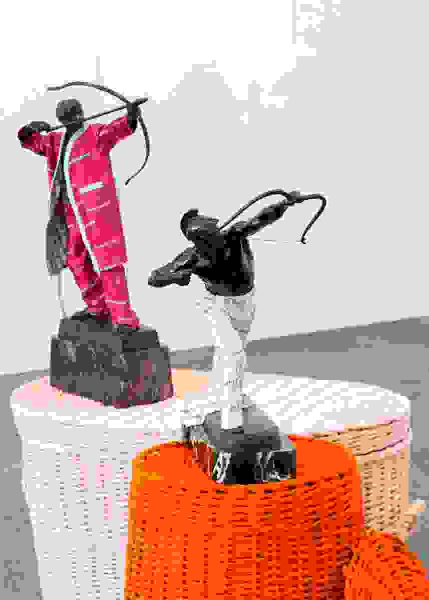 Hannah Sophie Dunkelberg gives the archers a possibility to relax from their previous commitments and contexts, offering them a space to escape their sometimes ambiguous tales for a moment. If we go deeper than Greek mythology and the image of Apollo with his bow and arrow, we may also encounter figures of English folklore such as Robin Hood. Of course, there are many tales beyond the Global North that celebrate archers as their heroes: In Chinese mythology, for instance, Houyi is known for shooting down nine out of the ten suns that were scorching the Earth, leaving only one to provide the necessary light and warmth for the world. He saved humanity from the unbearable heat and devastation caused by the excessive suns. No one would blame these figures for being exhausted after their heroic deeds and needing a moment’s rest to close their eyes and recuperate.