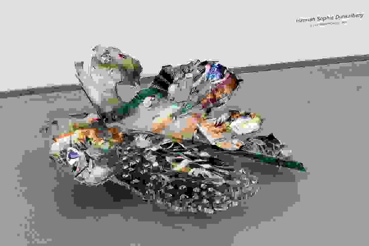 Hannah Sophie Dunkelberg turns photographs into objects in the literal sense of the word. She scans her analog photos and assembles them into collages, which then serve as the surfaces of her sculptures. Water drops on leaves in nature reflect their surroundings. Dunkelberg directly prints the outside world onto the figlieaf as a threedimensional object. In the exhibition space, fallen leaves lie next to life buoys: just like in the past, photography has to do with remembrance and offers something to hold on to.