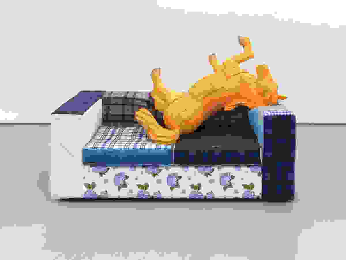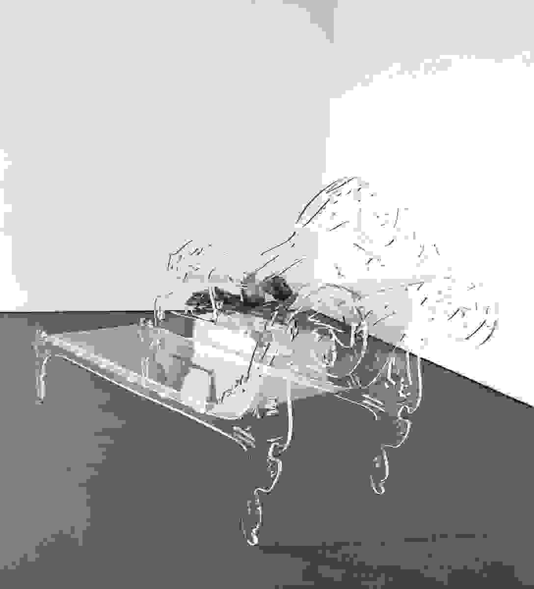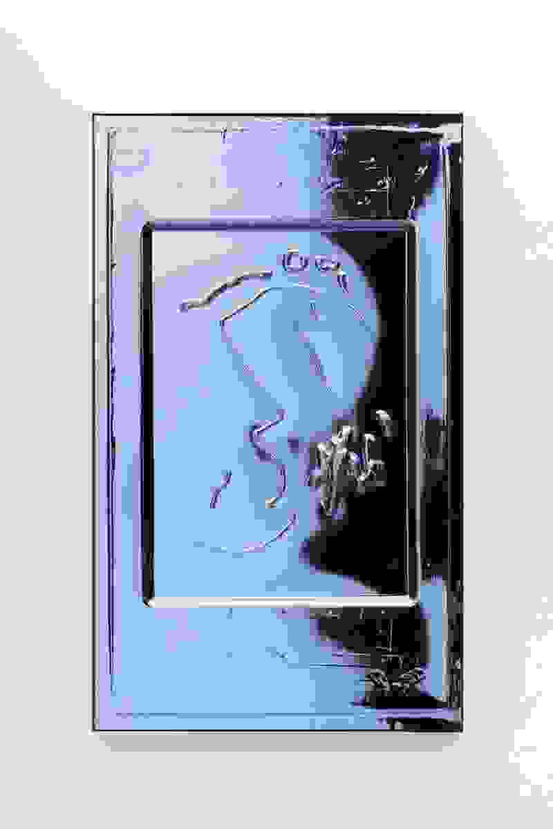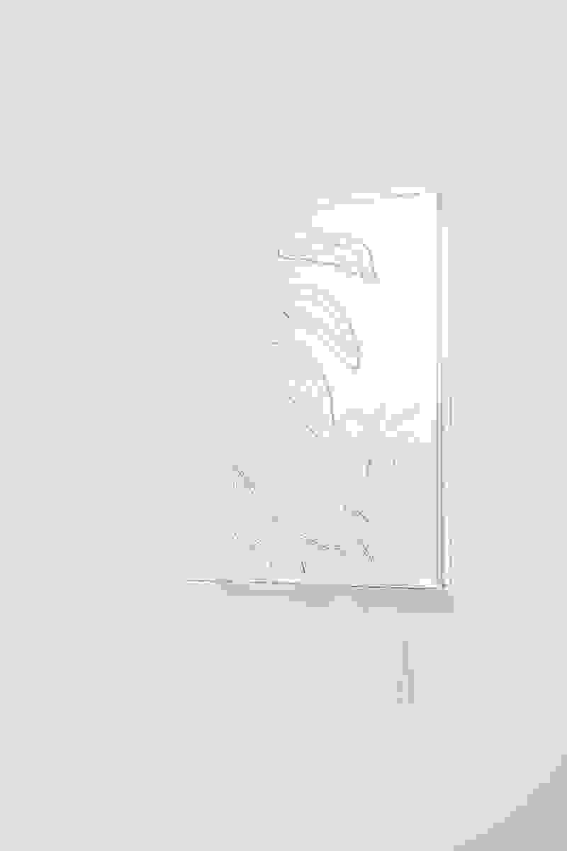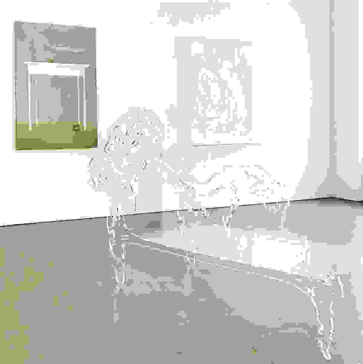The silhouettes of the cultural aesthetics are only revealed in the disguise of the banal, which manifests itself in the relief made of transparent PETG-synthetic material and equipped with two plastic glasses for champagne: the more sensual quality is lost, the more the symbolical will come to the fore. Modersohn’s painting Last but not least also refers to metaphorical motives: a cigarette has just been put out; the empty champagne glass stands by. The domestic environment is evoked from his memory, but it is the intensive painting process itself, the interrelation between construction and factuality that bring new, complex life circumstances and a magical effect of place. (...) The depiction of the ordinary, of the everyday object, of an interior, of a mere silhouette or a casted shadow, is a wellspring for both artists. Fainted Couch by Hannah Sophie Dunkelberg demonstrates a characteristic of the model: the observer develops an alternative approach to an object that is commonly used. There where people are not present, light is used as a source of potential presence, simultaneously marking a threshold to the absence itself. (...)