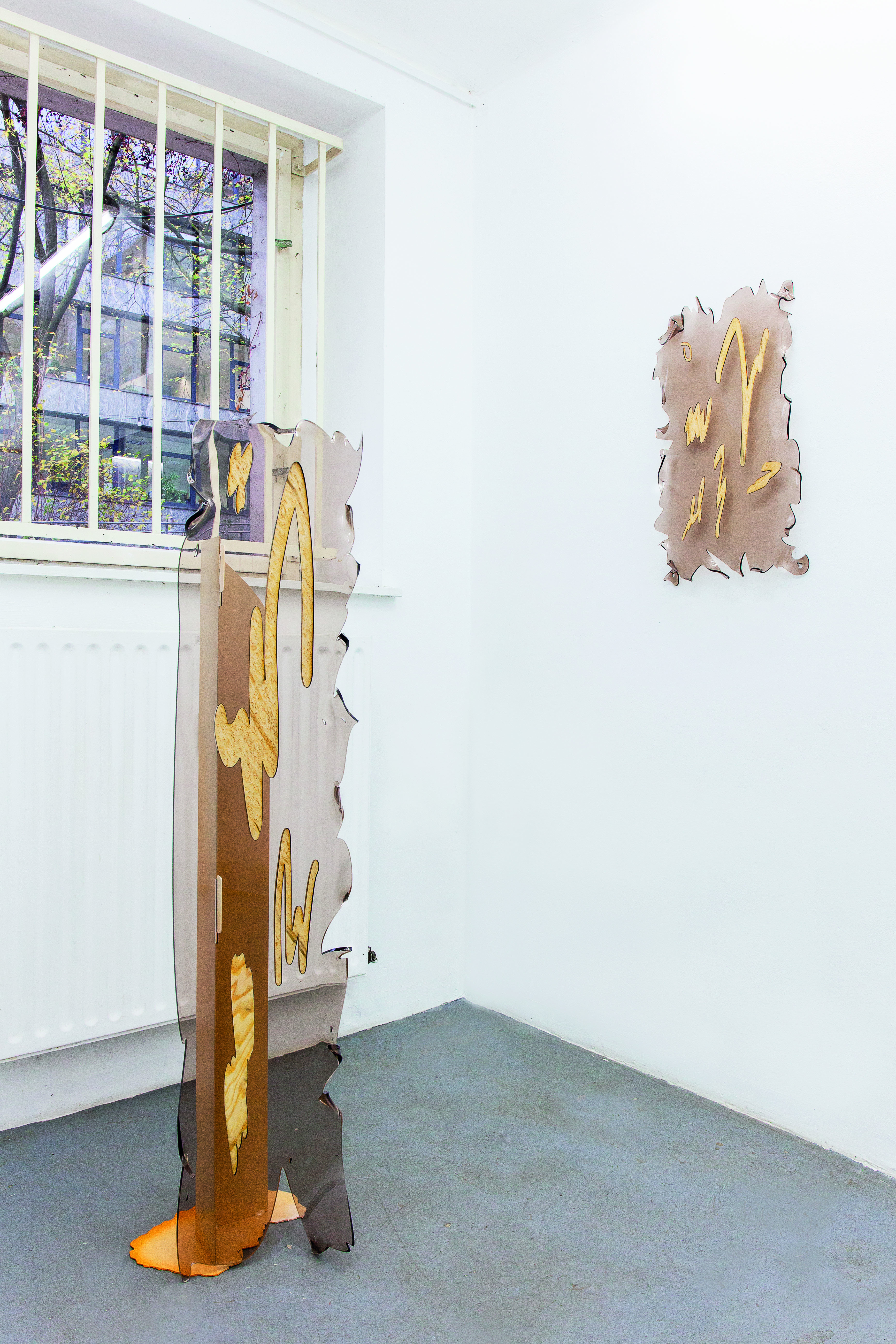 And yet, all the seemingly contrasting qualities that differentiate these groups of works, will not stop the eye to search in them for similarities. Dunkelberg’s and Modersohn’s artworks are similar already at their outset, which is always a drawing or a painting. While Modersohn negotiates the depicted objects on canvas, Dunkelberg, basing on a drawing, transfers them into ever new shapes. The relief Sprezzatura is such an example, emerging from both sculpture and painting – its title implies the potential to make even the most strenuous achievements look easy and effortless. The artwork takes place in the context of art production and reception of art, at the fine line between a fluffy shell and a social burden.